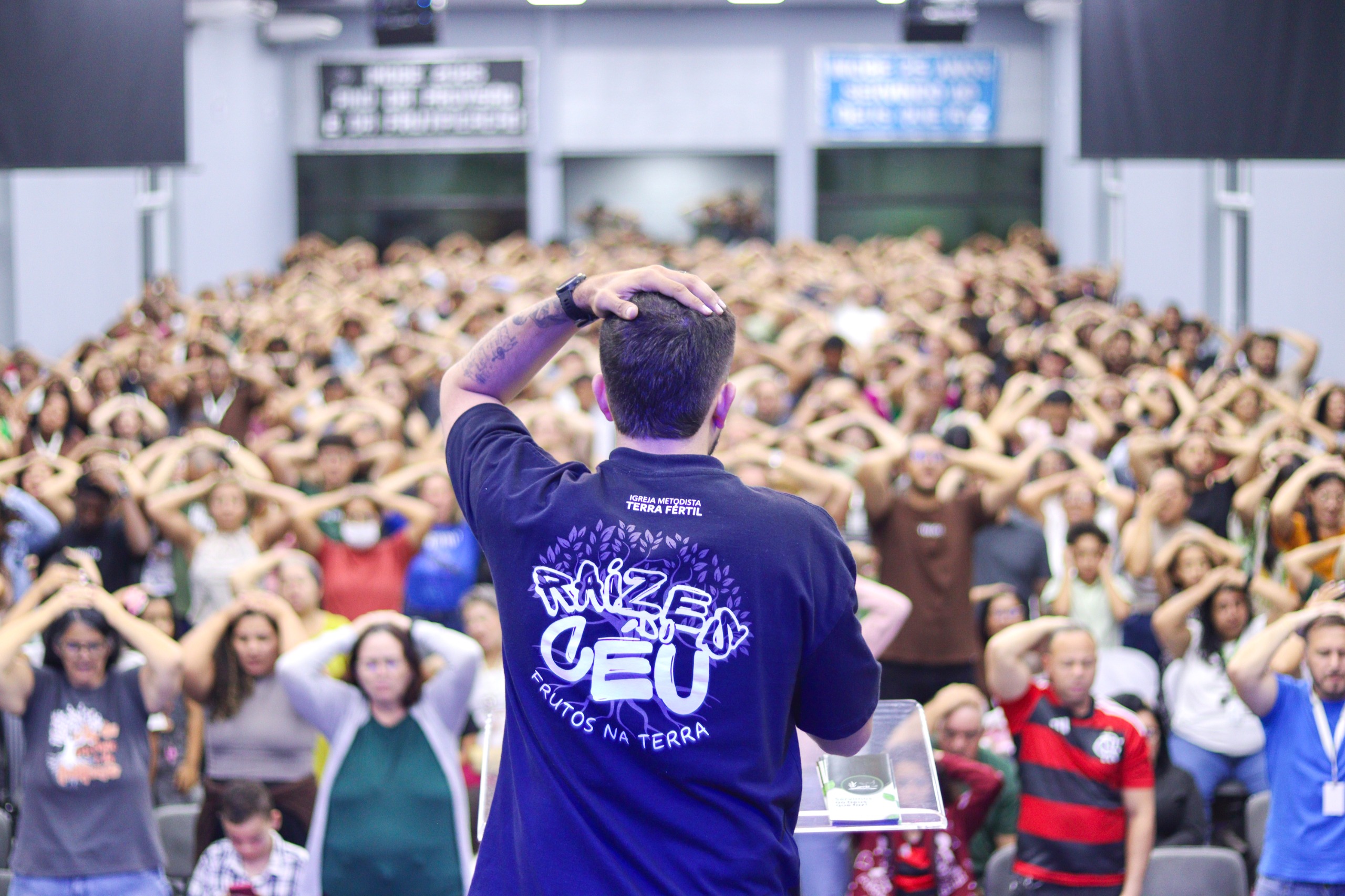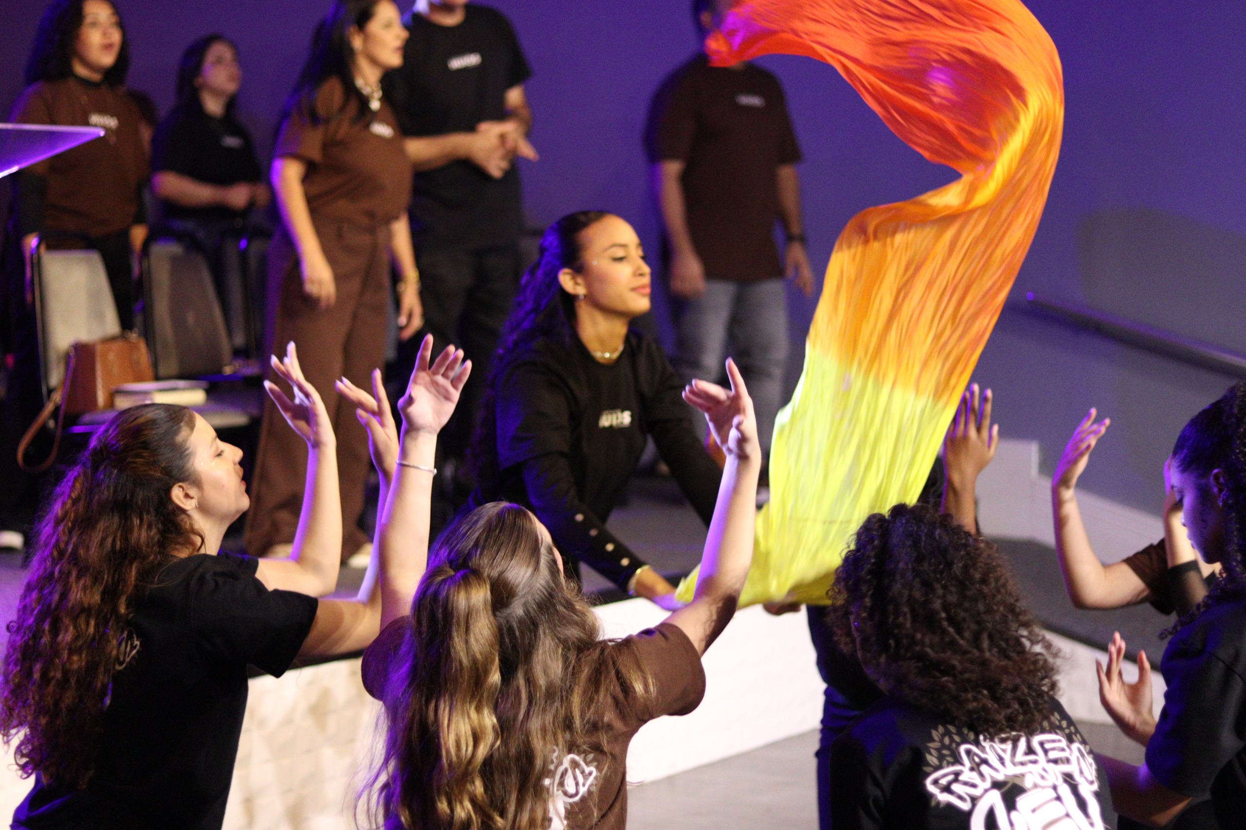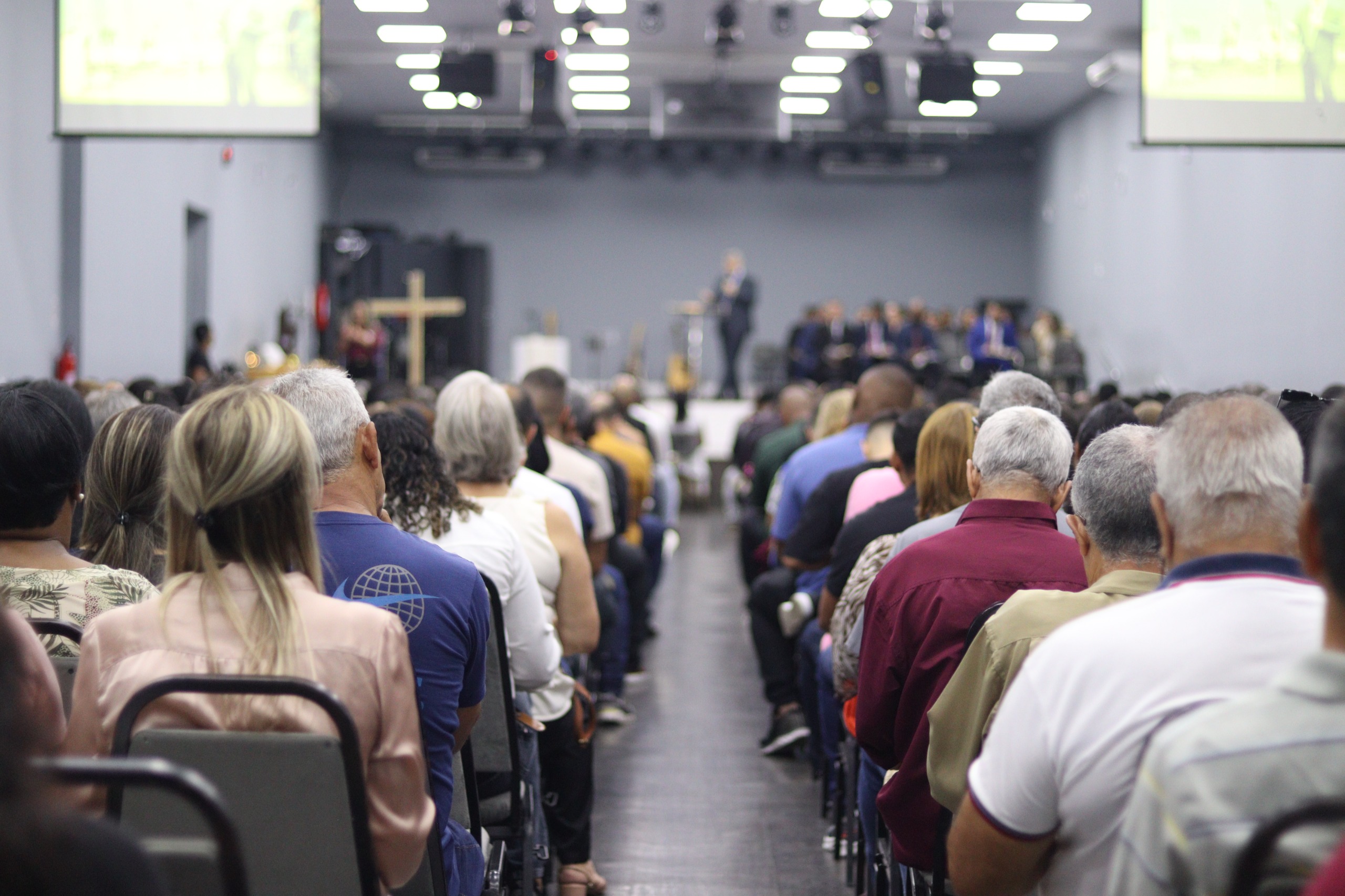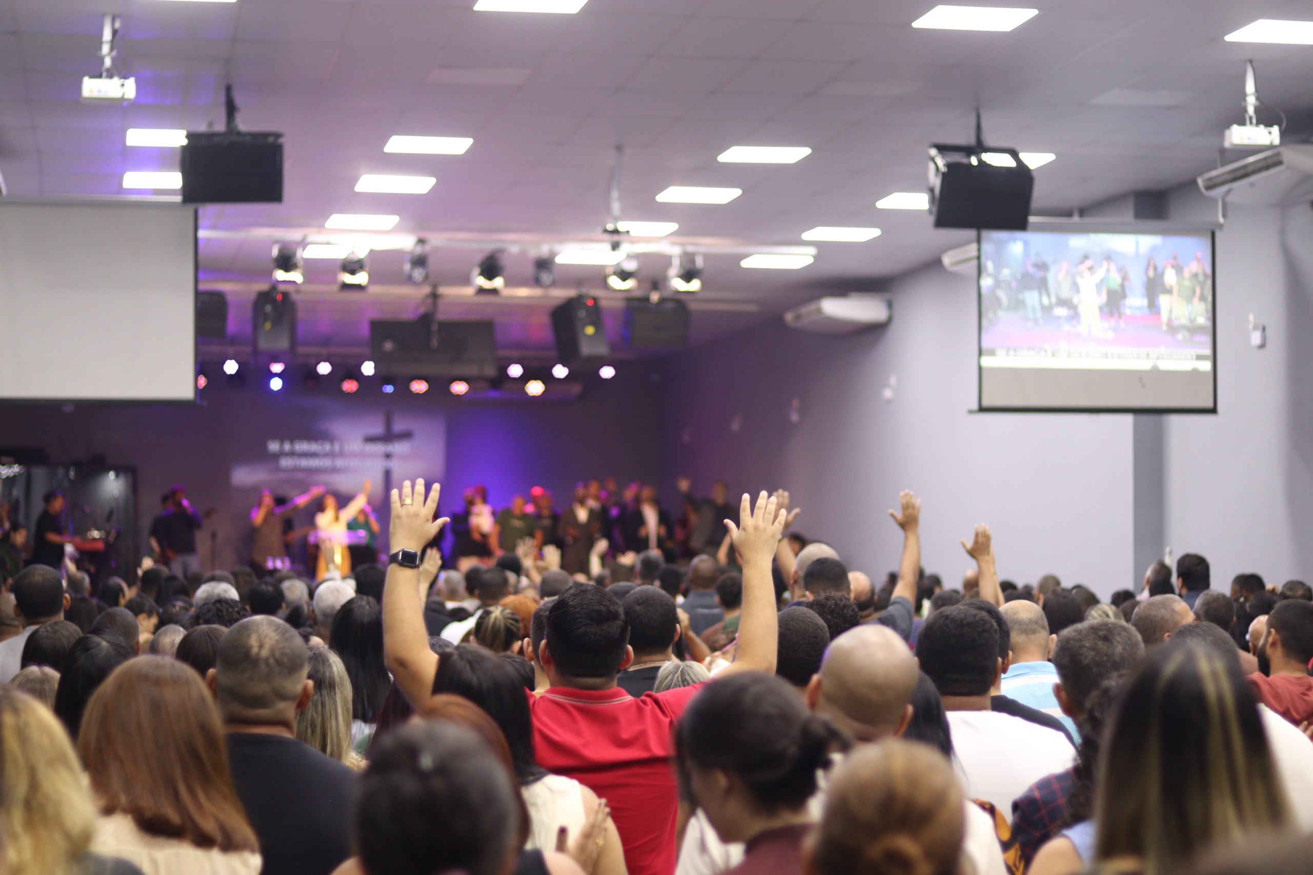 Culto com louvor e foco em estudos bíblicos para aprofundamento na palavra de Deus.